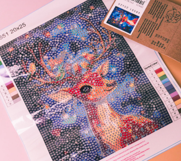 -Deja un poco de adhesivo en el bolígrafo, finalmente recoge el diamante y colócalo en el número correspondiente en el lienzo.